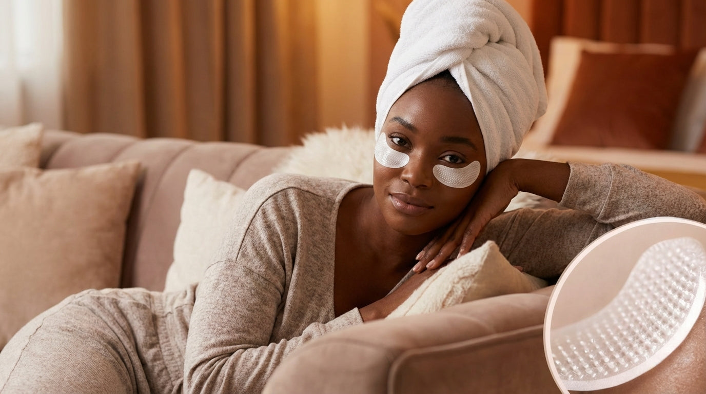 The micro-designed surface helps deliver active ingredients efficiently while supporting skin hydration and firmness in the under-eye area.